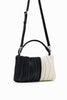 A spacious shoulder bag made from recycled polyester with a two-tone pleated exterior featuring the logo which is also in two colours.