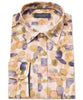 Abstract Print on a Soft Linen Cotton Blend fabric. The fabric offers a comfortable and breathable feel, while the contrast print adds a touch of modern style. The softer collar ensures a more relaxed and effortless look. Perfect for any casual or semi-formal occasion.