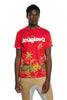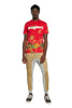 Red is the colour of passion, but also of the tropic. That's why we've chosen it as the background for the tropical print of palm trees of this basic cotton T-shirt with round neck.