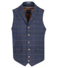 Guide London Navy Double Breasted Waistcoat with Plum Overcheck