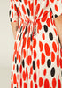Midi shirt dress with almond polka dot print. Shirt collar and short sleeves. Front buttons. Dart detail at the waist and tie ribbons at the back. Model wears size S