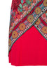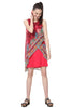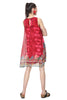 Red multilayer dress with round neck and floral prints. Movement is added to the straight cut of the bottom layer of this dress with two diaphanous layers that cross over the chest forming ruffles that fall at the back.