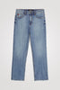 Straight fit jeans with high waist and ankle grazer cut, plain, unadorned. An updated basic that goes with everything.