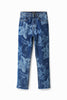 Straight-cut jeans with a floral laser print, tone-on-tone stitching, high waist and cropped hem.
