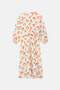Flower print cotton midi dress. Mandarin neck and three-quarter sleeves with gathered slits, cuffs and button. Front button fastening to the waist and belt. Side pockets. Model is 178 cm tall and wears size S.