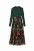 Compania Fantastica Midi Dress with Long Sleeves and Green Floral Print