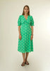 Beautiful embroidery, apple green colour, v neck, fitted under the bust and mid length.
