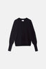 Fine knit black sweater. With a round neckline and long puffed sleeves. Detail of ribbed finishes.