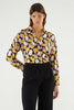 Twill viscose shirt with pear print. With a V-neckline and long sleeves finished with buttoned cuffs. Front closure with buttons.