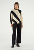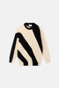 Black and White asymmetrical print knit sweater. With a round neckline and puffed long sleeves.