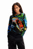 A long-sleeve pullover in fine knit with a multicolour marbled print.
