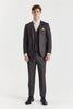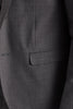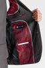 Make a bold statement in this sophisticated charcoal suit, showcasing intricate pick stitching throughout for a refined touch. The striking red and black lining adds a modern contrast, making it a versatile choice for weddings and special events.
